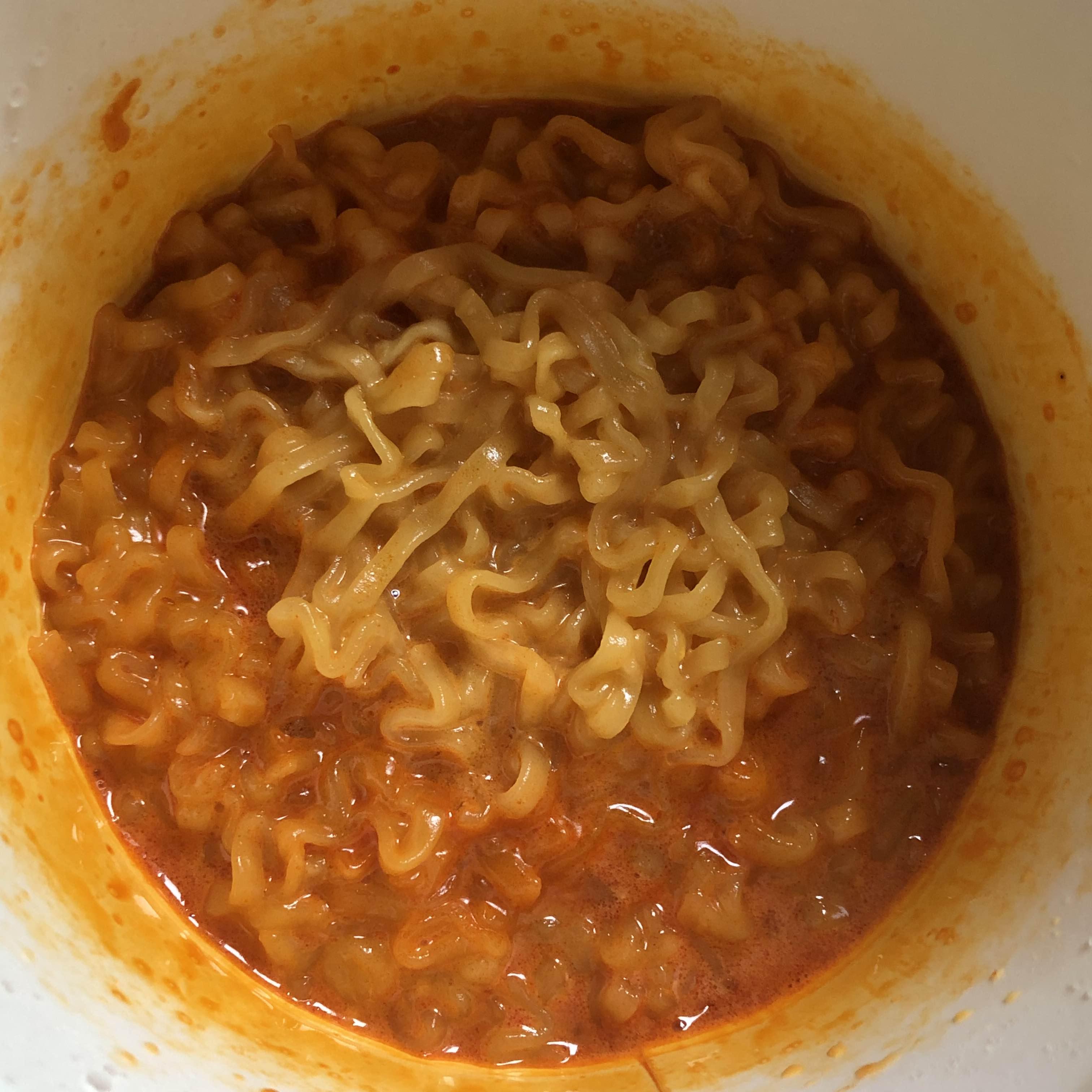 여기서 더 맛있게 먹는 꿀팁은 2분 정도 돌린후 꺼내서 후첨소스를 넣고 섞어준 뒤 다시 돌리는거에요. 그러면 소스가 면에 더 잘 스며들어서 한층 더 맛있고 꾸덕꾸덕해져요.