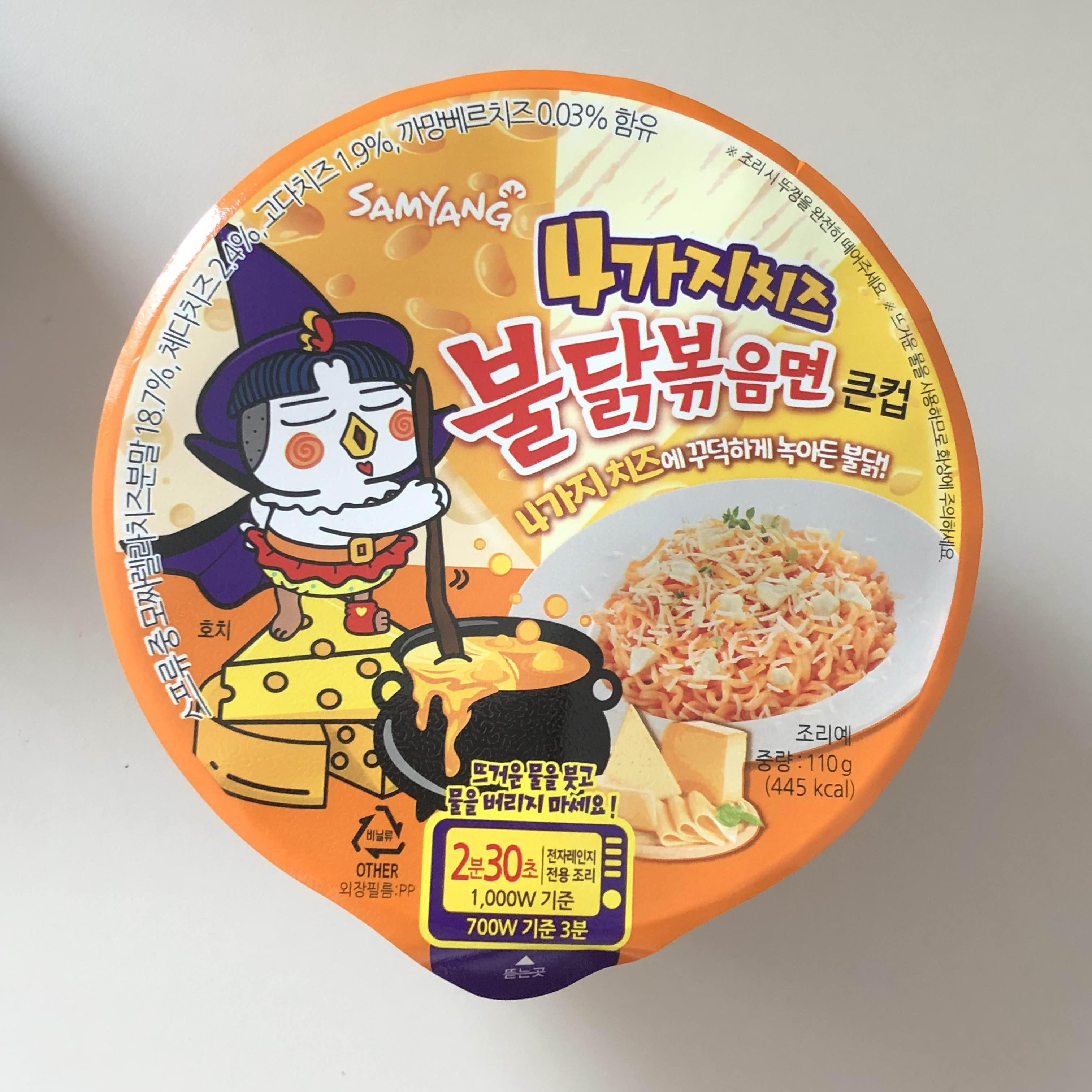 모짜렐라치즈, 까망베르치즈, 체다치즈, 고다치즈 총 4가지 치즈분말이 꾸덕하게 들어간 불닭볶음면에요.