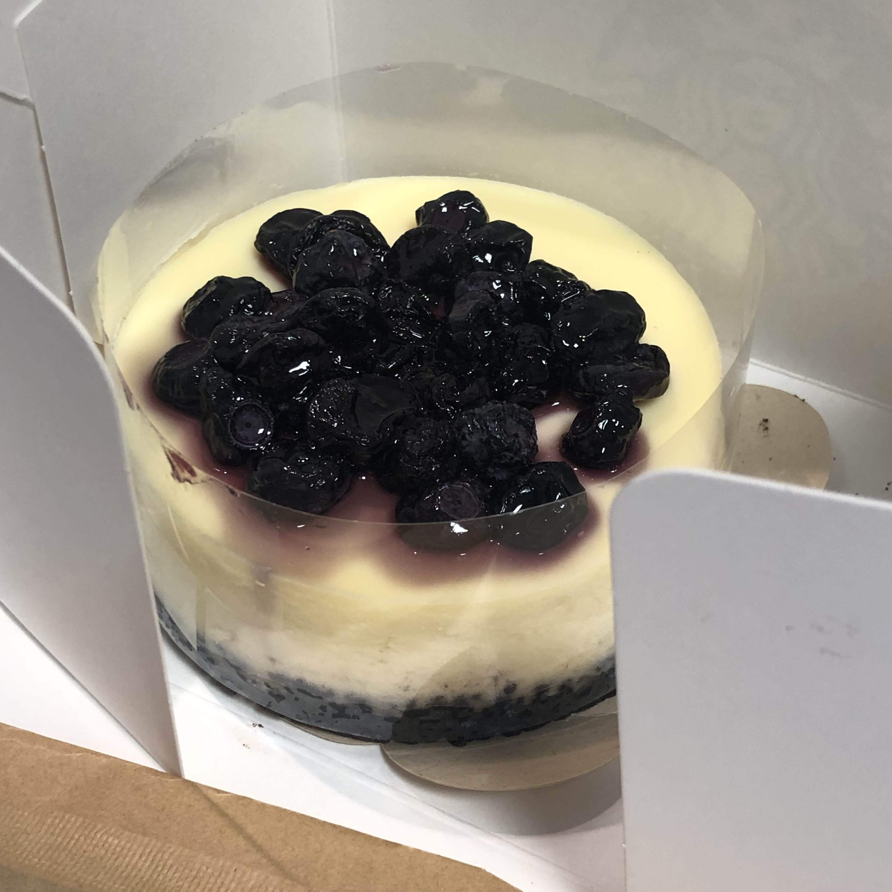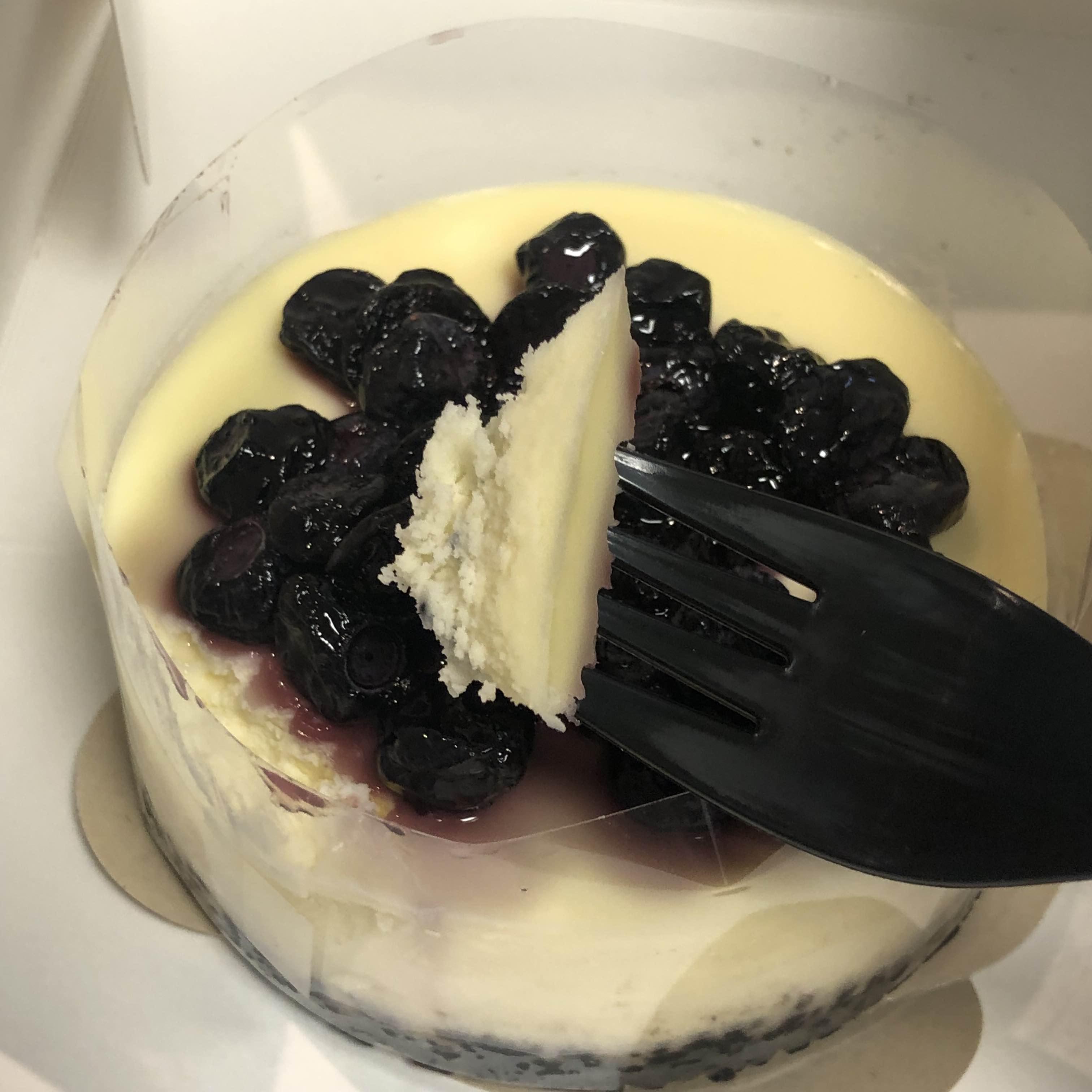 맨 아래에는 오레오과자 느낌의 크런치과자가 깔려있고 위에는 꾸덕꾸덕한 치즈케이크 그리고 블루베리 토핑으로 마무리입니다. 사진으로 보니까 적당해 보이지만 크기는 생각보다 낮고 작아요! 약간 큰 조각케이크 정도의 양이라고 보시면 될 듯합니다. 열량은 790칼로리로 생각보다 높게 느껴지네요.